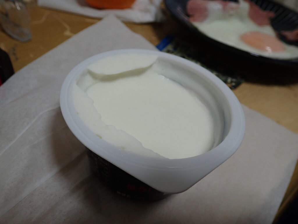 ギリシャヨーグルトのように濃縮させたのとはまた異なるようなボソボソ間であり、体のため筋肉のために無理して食べるよな決して好んで食べたいとは思わないような不思議なヨーグルトという感じです。