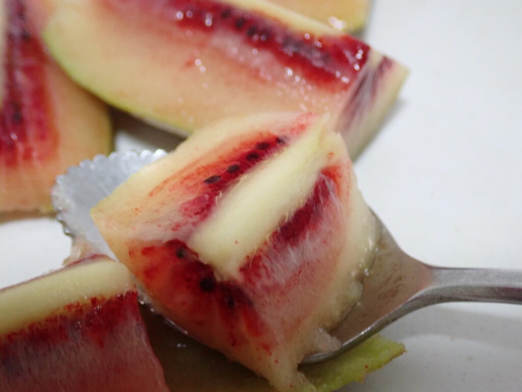 スプーンですくうと香りは少しバラ科のような通常のキウイよりは芳醇な香りがするように思います。