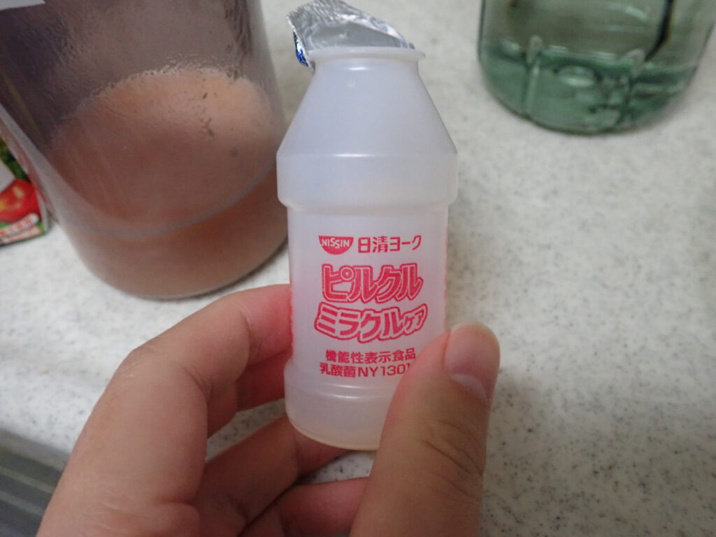 私は筋トレ前や腸内環境の改善を見込んでこれに乳酸菌飲料のピルクルなどを入れることがあります。